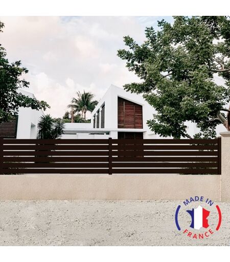 PACKIT Clôture aluminium 6 lames modèle ajouré en kit - 2 éléments Dimensions L4154 mm (poteaux compris) x H675mm couleurs Marron ral 1247