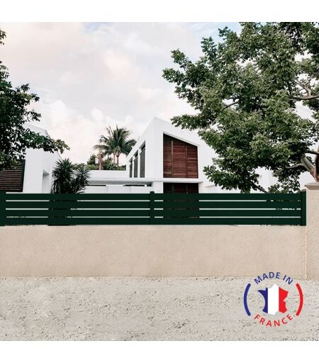 PACKIT Clôture aluminium 4 lames modèle ajouré en kit - 2 éléments Dimensions L4154 mm (poteaux compris) x H455 mm couleurs Vert ral 6005