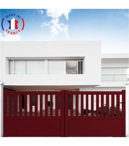 Packit - Portail aluminium coulissant semi-ajouré en kit dimensions L.4000 (entre piliers) x H.1300 mm Couleurs Rouge (ral 3004)