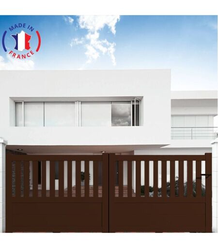 PACKIT Portail aluminium coulissant semi-ajouré en kit dimensions L.4000 (entre piliers) X H.1300 mm Couleurs Marron (RAL 1247)