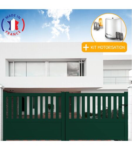 Packit - Portail aluminium coulissant semi-ajouré en kit + Motorisation dimensions L.3500 (entre piliers) x H.1300 mm Couleurs Vert (ral 6005)