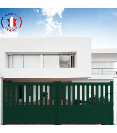 Packit - Portail aluminium coulissant semi-ajouré en kit dimensions L.3500 (entre piliers) x H.1300 mm Couleurs Vert (ral 6005)