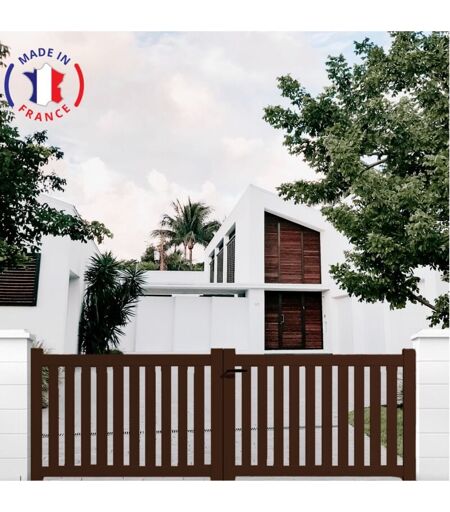 Packit - Portail aluminium battant ajouré en kit dimensions L.3000 (entre piliers) x H.1200 mm Couleurs Marron (ral 1247)