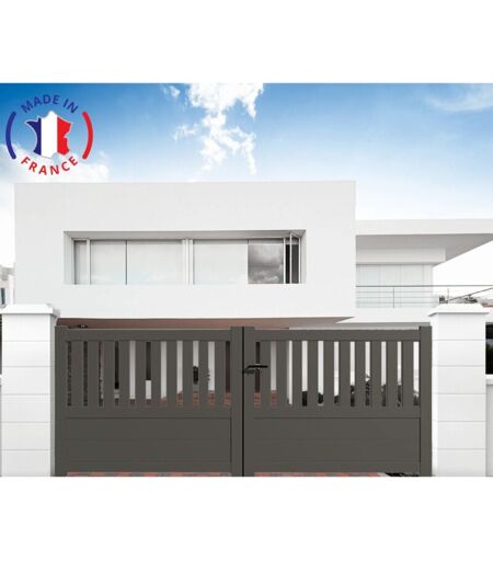 Packit - Portail aluminium battant semi-ajouré en kit dimensions L.4000 (entre piliers) x H.1300 mm Couleurs Gris quartz (ral 7039)
