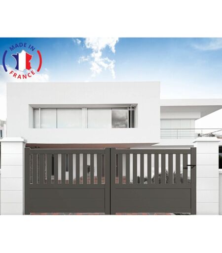 Packit - Portail aluminium coulissant semi-ajouré en kit dimensions L.3000 (entre piliers) x H.1300 mm Couleurs Gris quartz (ral 7039)