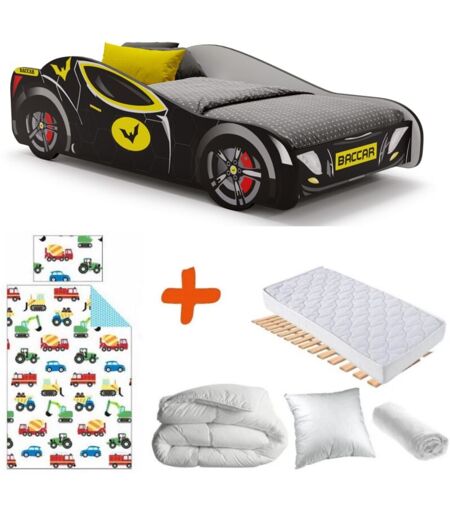 Bebegavroche - Pack Lit Voiture de course Batcar Noire 140 x 70 cm