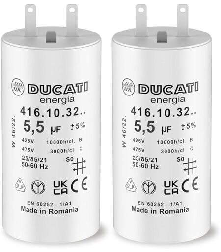 DUCATI ENERGIA Lot de 2 Condensateurs 5,5 uF pour Moteur de Volet Roulant Somfy Durée de Vie 10 000 Heures Condensateur Cylindrique Ducati