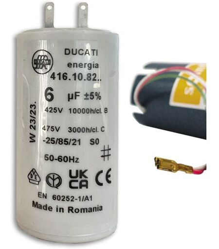 ROXOLID Condensateur 6 µF – Moteur de volet roulant ou store – Compatible SOMFY, SIMU, NICE – Cylindrique – 2 cosses Faston 2,8 mm – 450V – Haute résistance