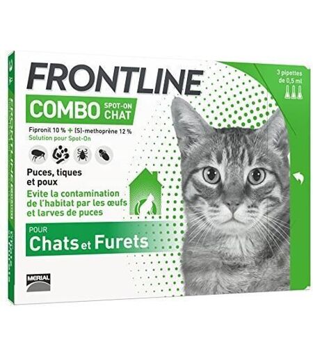Trois pipettes FRONTLINE Combo chat pour traiter votre chat contre puces et tiques ...