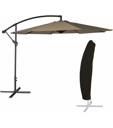 Happy Garden - Parasol déporté oahu rond 3m de diamètre taupe + housse