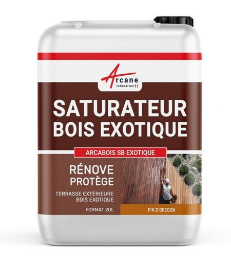 ARCANE INDUSTRIES Saturateur Bois Exotique pour Terrasse et Mobilier en teck, Ipé, Cumaru, garapa, itauba ... : ARCABOIS EXOTIQUE - 20 L (jusqu'à 100 m²) Pin D'Oregon