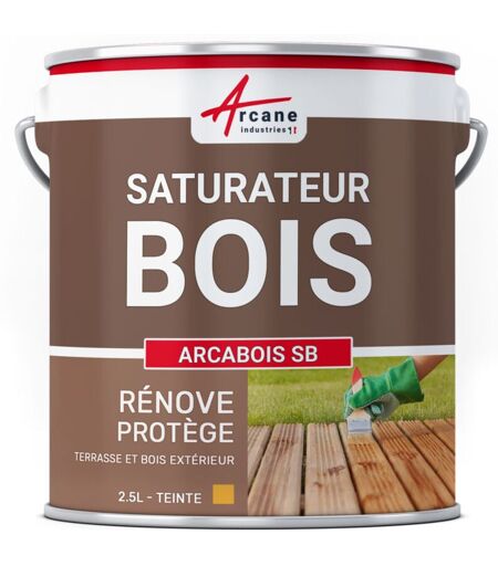 Arcane Industries - Saturateur, bois, pour terrasse, bardage, extérieur : Arcabois sb - 2.5 l (jusqu'à 12.5 m²) Chêne Doré - Teinte Jaune