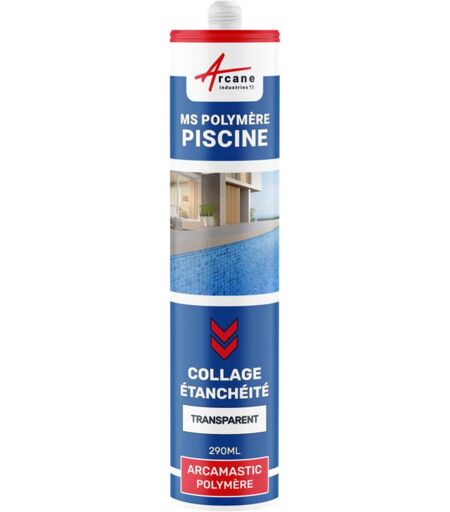 Arcane Industries - Mastic piscine, colle et étanchéité, pvc, carrelage - 290 ml x 1 Transparent