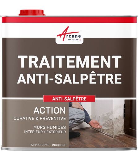 ARCANE INDUSTRIES Traitement du salpêtre Antisalpêtre Murs humides hydrofuge anti moisissure ANTISALPÊTRE 0.75 L (jusqu a 3m²)