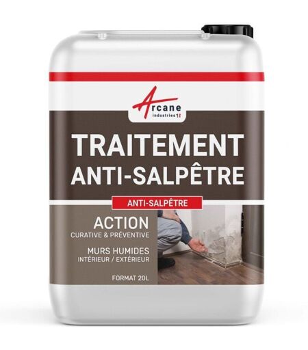 Arcane Industries - Traitement du salpêtre, antisalpêtre pour murs humides, hydrofuge, anti moisissure : Antisapêtre - 20 l (jusqu à 80m²)
