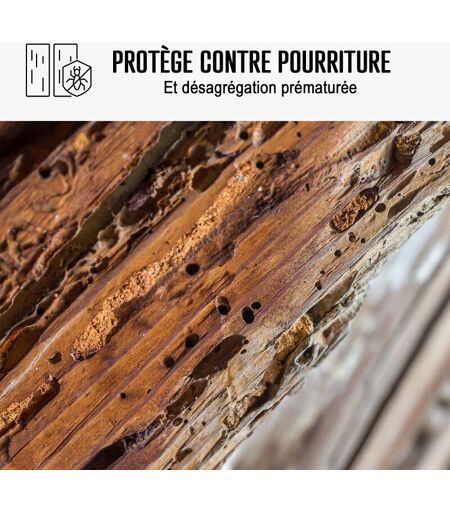 Traitement anti mérule pour charpente, poutres et bois extérieur : La mérule est un champignon qui se développe à grande vitesse quand elle n'est pas traitée rapidement, elle progresse jusqu'à 12cm par semaine et infectera toute la maison. N'attendez pas et agissez. Arcaprotect bois est radical contre la mérule permettant de protéger les bois intérieurs et extérieurs contre la pourriture et dégradation prématurée. Arcaprotect bois est un traitement anti champignon, fabriqué dans notre usine Arcane Industries Ce traitement fonctionnera aussi sur les élements en maçonnerie. AVANTAGES PRODUITS L'effet du traitement est immédiat et optimal Action curative et préventive Incolore et non gras (ne tache pas le bois) Durabilité de l'action jusqu'à 25 ans Extrêmement efficace contre la mérule.Quel est ce champignon? La mérule ou mérule pleureuse surnommé la lèpre de la maison est un champignon qui ronge le bois en particulier tout ce qui est charpentes, poutres... tous les bois peuvent être touchés. Sa présence est constatée dans les maisons très humides, mal aérées, mal entretenues. Ce champignon préfère les bois résineux comme le pin sapin, épicéa... elle peut même se développer sur les métaux, le plâtre ou les briques.DESTINATION Idéal pour tous types de construction attaqués ou sains: Charpente bois Poutres bois Portes bois Fenêtre bois Volets bois Portails bois Abris de jardin Ossature bois Meuble bois ... Convient pour tous bois : bois de construction , bois massif, matériaux à base de bois, résineux/ feuillus. Convient aussi pour tous supports maçonnés: parpaing, béton, brique...Traitement préventif : 100ml par m² en une couche, soit 5L pour 50 m². Traitement curatif : 300ml par m² en une couche, soit environ 5L pour 16m² Par injection (en complément d'une application à minimum 100ml par m²) : 180ml par m² ...