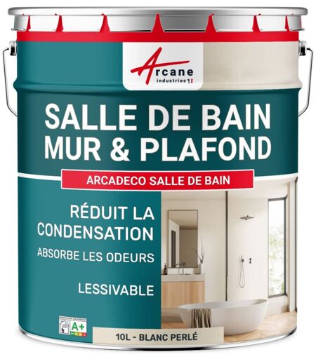 PEINTURE SPÉCIALE SALLE DE BAIN Notre peinture anti-condensation protège vos surfaces, prolongeant leur durée de vie et maintiennent l'aspect neuf de votre salle d'eau. En empêchant la formation de condensation, notre peinture anti-condensation aide à éliminer les odeurs désagréables qui peuvent se développer dans les environnements humides. Profitez d'un espace fraîs et propre en tout temps. ARCADECO SALLE DE BAIN offre un aspect mat élégant qui s'adapte à tous les styles de décoration des pièces d'eau. Plusieurs couleurs sont disponibles, du blanc classique aux teintes plus contemporaines comme le beige . Développée au sein de notre usine en France : Arcane Industries EFFET ANTI-CONDENSATION DONC LIMITE LA FORMATION DES MOISISSURES : En général, la condensation se produit fréquemment dans les bâtiments où l'ensemble isolation-ventilation-aération n'est pas optimisé. Ce phénomène est particulièrement observé dans les pièces considérées comme "humides", telles que les salles de bains. ...
