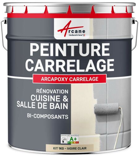 Arcane Industries - Peinture carrelage, cuisine & salle de bain, résine bi-composante : Arcapoxy carrelage - 1 kg (jusqu'à 10 m² en 2 couches) Ivoire