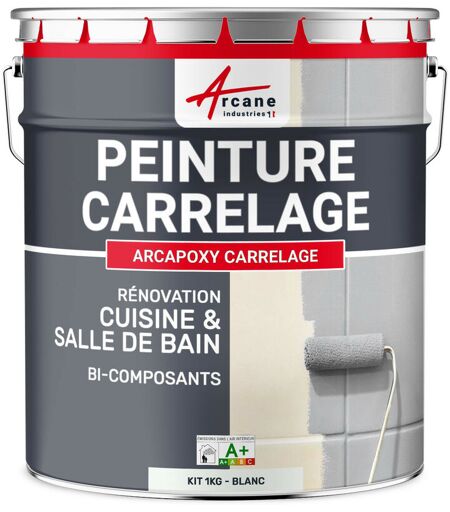 Arcane Industries - Peinture carrelage, cuisine & salle de bain, résine bi-composante : Arcapoxy carrelage - 1 kg (jusqu'à 10 m² en 2 couches) Blanc