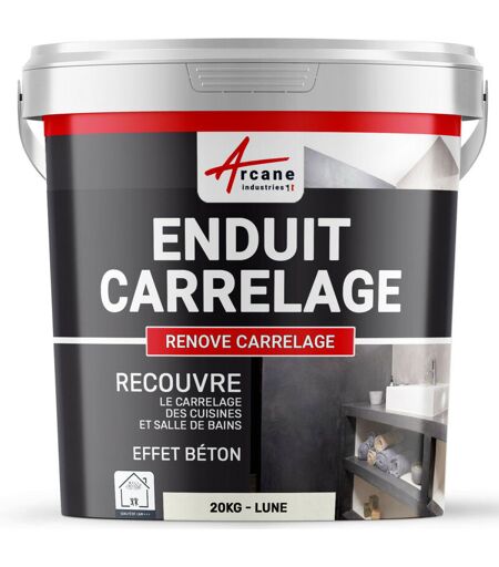 Arcane Industries - Enduit carrelage, salle de bain, cuisine, mural et sol, recouvre et rénove, faïence, masquage, renove carrelage - 20 kg (environ