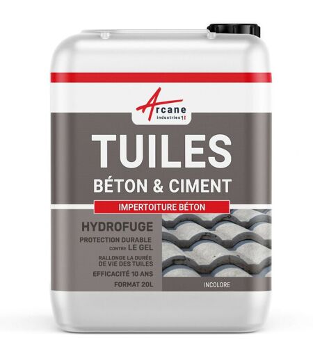 Arcane Industries - Imperméabilisant pour tuiles en béton et ciment, hydrofuge, incolore, toiture poreuse, impertuile beton - 20 l (jusqu'à 100 m²)