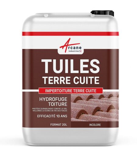ARCANE INDUSTRIES Imperméabilisant pour tuiles, en terre cuite, hydrofuge, incolore, toiture poreuse, impertoiture terre cuite - 20 L (jusqu'à 100 m²) - ARCANE