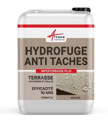 Arcane Industries - Hydrofuge, imperméabilisant, terrasse, balcon, sol, garantie 10 ans, anti-taches, pierres, dalle, béton - 5 l (environ 30 m²)