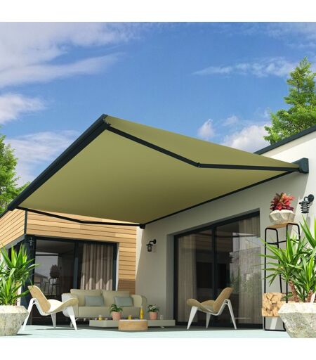 Store Banne Coffre Soa 5,00x3,50 M (Motorisé Secours À Télécommande + Led - Gris Anthracite - Écru)