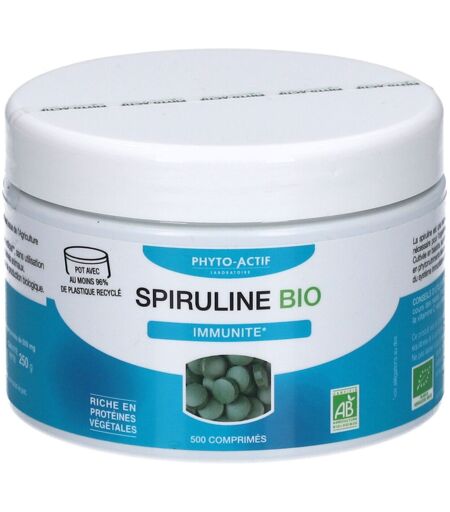 Complément alimentaire à utiliser dans le cadre d’une alimentation variée, équilibrée et d’un mode de vie sain.100% d'origine naturelle, la spiruline Phyto-actif est une des plus riches en phycocyanine (plus de 14%) et renferme un grand nombre de phytovitamines et phytonutriments tel que la vitamine A qui aide au fonctionnement normale du système immunitaire.Riche en protéines végétales (+ de 60%), elle est idéale pour les sportifs, les végétariens et les personnes âgées.La spiruline Phyto-Actif est cultivée en bassins de plein air contrôlés par Ecocert dans une ferme aquacole sur la route des Indes, dans un environnement privilégié loin de la pollution et réunissant les conditions optimales pour préserver au mieux ses qualités nutritionnelles. Cette spiruline est contrôlée par Ecocert selon le référentiel de l'agriculture biologique.IngrédientsSpiruline (Spirulina platensis) (SULFITES) issue de l'Agriculture BiologiqueAllergènes : Sulfite.Valeurs nutritionnellesIngrédientQuantité pour 6 comprimésSpiruline3 g— Dont Protéines1,80 g— Dont Phycocyanines0,36 gConseils d'utilisation6 comprimés par jour à avaler avec un peu d'eau au cours des repas.Précautions d'emploiÀ conserver à l'abri de la lumière, de la chaleur et de l'humidité.Un avis médical est requis pour les femmes enceintes ou allaitant, pour les personnes présentant un excès de fer ou un risque d'allergie et les personnes atteintes de la goutte ou de la phénylcétonurie.Enfants de plus de 6 ans.Avis médical requis pour les femmes enceintes et allaitantes.Poids net250 gAdresse du FabricantLABORATOIRES NATESCIENCE2 avenue Leonard de Vinci33600 Pessac ...