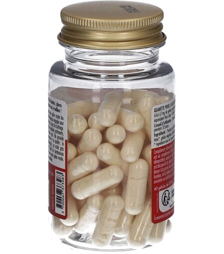 Complément alimentaire à utiliser dans le cadre d’une alimentation variée, équilibrée et d’un mode de vie sain.Phyto-Actif vous propose une gelée royale bio d’exception, issue d’une agriculture biologique engagée pour la santé des abeilles et la protection des zones de butinage. Ce nectar magique, est la synergie de multiples nutriments, de vitamines, de minéraux et d’acides gras. Elle possède un actif très rare qui fait sa renommée et sa qualité : le 10-HDA (acide 10-hydroxy–2–décénoïque), un acide gras extrêmement précieux qui a fait l’objet de nombreuses études scientifiques, présent à 26.66 mg dans notre gelée royale.IngrédientsPoudre de gelée royale lyophilisée*, maltodextrine*, gélule végétale (hydroxypropylméthylcellulose).*Ingrédients issus de l'agriculture biologique.Valeurs nutritionnellesQuantité pour 3 gélules par jourGelée royale : 666,67 mg de gelée royale lyophilisée soit 2000 mg équivalent frais dont 10-HDA : 26,6 mgConseils d'utilisationPrendre 3 gélules le matin ou le midi pendant 20 jours.Précautions d'emploiCe produit est un complément alimentaire et ne se substitue pas à une alimentation variée et équilibrée et à un mode de vie sain. Il est déconseillé de dépasser la dose journalière indiquée.Ne pas laisser à la portée des jeunes enfants.À conserver à l'abri de la lumière, de la chaleur et de l'humidité.Déconseillé aux femmes enceintes ou allaitantes, aux enfants de moins de 6 ans.Poids net60 gélulesAdresse du FabricantLaboratoire Natescience3 avenue Léonard de Vinci33600 PessacFrance ...