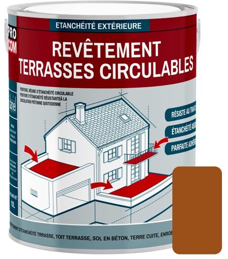 PRO COM Peinture, résine d'étanchéité imperméabilisation terrasse circulable, balcon, sols extérieurs, béton, plusieurs coloris PROCOM 2.5 litres Terre cuite