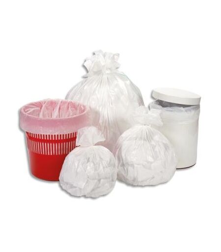 Sacs poubelles blancs adaptées aux sanitaires et poubelles de bureau. Contenance 50 litres. Conditionnement par boite de 500 sacs. Epaisseur 24 microns. Choisissez vos sacs poubelles en fonction des dechets qu'ils devront contenir : papier, detritus, dechet de forte densité ou humides Plus le dechet est lourd, plus les microns du sac doivent être élevés. Caractéristiques éco-responsable : Recyclable ...