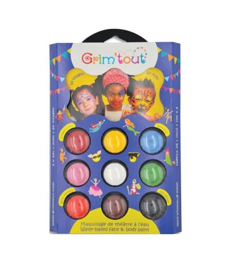Set de 9 Galets de maquillage à l'eau Grim Tout + pinceau + livret de maquillage - nettoyage eau et savon