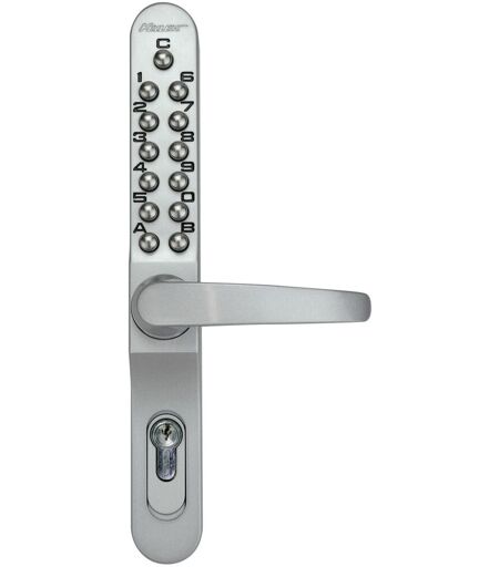 ApplicationsLe Keylex Profil est un contrôle d'accès à code intégralement mécanique conçu pour une utilisation individuelle ou collective sur des portes de locaux sensibles utilisées de façon fréquente : portes d'entrées de logements ou d'entreprise, salles informatiques, caisses centrales de magasin, laboratoires, cabinets médicaux...Description: Changement de code sans ouverture du boitierS'adapte sur serrures à mortaiser ou en applique existantes, sans modification de la porte.Permet de conserver serrure, cylindre et clé existantsPeut s'intégrer à un organigramme existant.Fourni avec un jeu de plaques interchangeables pour différents entraxes de cylindres.Référencé par La Poste.Fermeture automatique de la porte en "claquer c'est fermer".Sortie toujours libre.Béquille débrayable pour usage intensifAdaptable avec FAP OPSIAL et JPM 89, JPM 90. Sur demande.Système entièrement mécanique en acier inoxydableUsage: 100 passages par jour ...