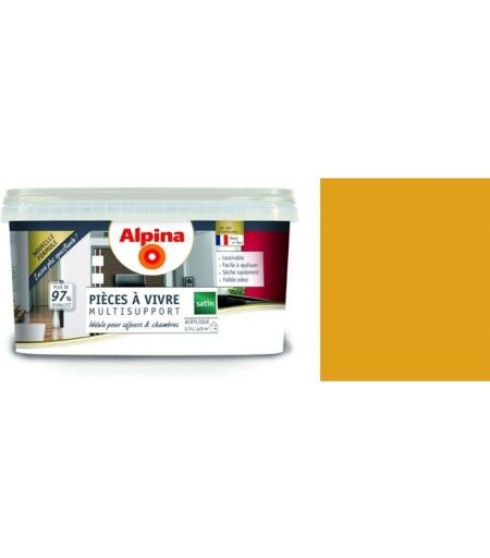 Alpina Peinture décoration pièces à vivre chambre séjour salon multi supports acrylique Jaune Moutarde satin 2.5L ADDICT