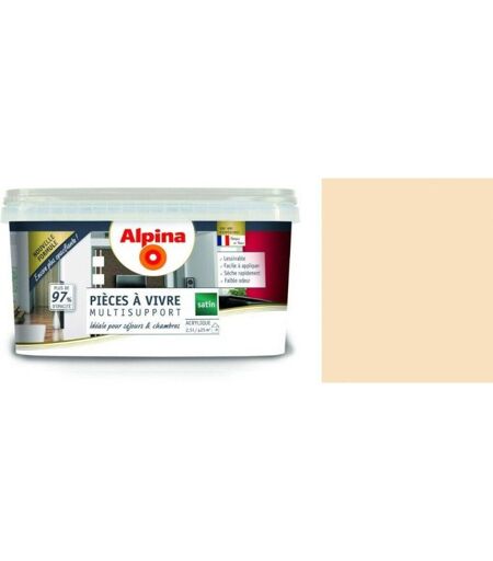 Alpina Peinture décoration pièces à vivre chambre séjour salon multi supports acrylique Beige Crème satin 2.5L ADDICT
