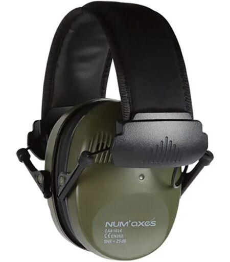 Num'axes Casque atténuation anti bruit 2 micros son stéréo avec cable jack kaki