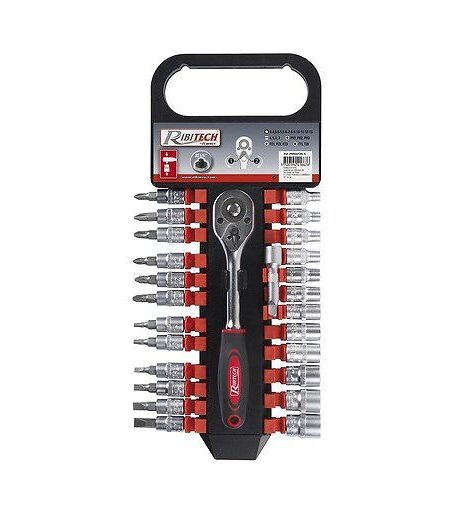 Ribimex Kit 26 pces cliquet + douilles+embouts+rallong 1/4" Chrome Vanadium ..