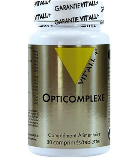 Nom du produit, titre : Opticomplexe 30 comprimés Code barre (EAN) :3700195662454 Poids du produits (g) :100,00 Nom de la marque : Vitall+ - Un complément alimentaire ne doit pas se substituer a une alimentation variée et... ...