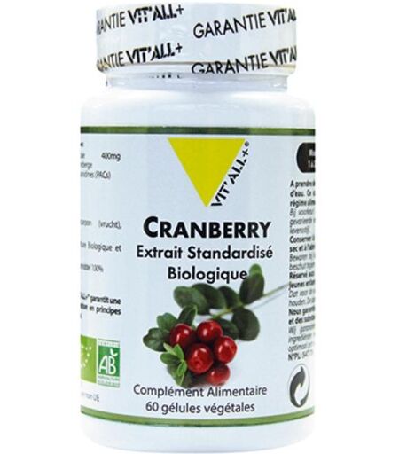 Nom du produit, titre : Cranberry bio (canneberge) extrait standardisé 400mg 60 gélules végétales Code barre (EAN) :3700195620935 Poids du produits (g) :100,00 Nom de la marque : Vitall+ - Un complément alimentaire ne doit... ...