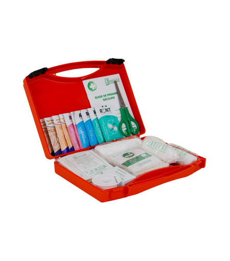 La trousse de secours pleine valisette 4 personnes est un indispensable pour toutes vos sorties en groupe. Idéale pour un groupe de 4 personnes, cette trousse de premiers secours contient tout le nécessaire pour les soins d'urgence et les pansements. Pratique et facile à transporter, cette trousse en forme de petite valise avec poignée est fabriquée en plastique rigide rouge et se ferme par 2 clips en plastique. Elle est également rechargeable, permettant ainsi de modifier son contenu en fonction de vos besoins. Avec ses dimensions de 24 x 20 x 5 cm et son poids de 400 g, elle est parfaite pour tout type d'intervention.Cette trousse de secours contient un large choix d'équipements médicaux pour répondre à toutes les situations d'urgence. Elle comprend notamment des compresses stériles, des bandes extensibles, des pansements compressifs de différents formats, des pansements adhésifs assortis, du sparadrap, des compresses alcoolisées, anti-coups au calendula et à la chlorhexidine, des sachets de gel anti-brûlures et bactéricide, une paire de ciseaux, une pince à échardes, une boîte d'épingles de sureté, une paire de gants vinyle et un guide de premiers secours en 6 langues. Cette trousse est conçue pour être polyvalente et répondre à un large éventail de besoins en matière de premiers secours.Pour plus de tranquillité d'esprit lors de vos activités en plein air, la trousse de secours pleine valisette 4 personnes offre la sécurité nécessaire en cas d'accident. Que ce soit pour une sortie en famille, une randonnée, un voyage en groupe ou toute autre activité collective, cette trousse de secours est un compagnon essentiel pour garantir la santé et le bien-être de chacun. Avec sa praticité et sa fonctionnalité, elle est l'alliée indispensable pour faire face à toute situation d'urgence. ...
