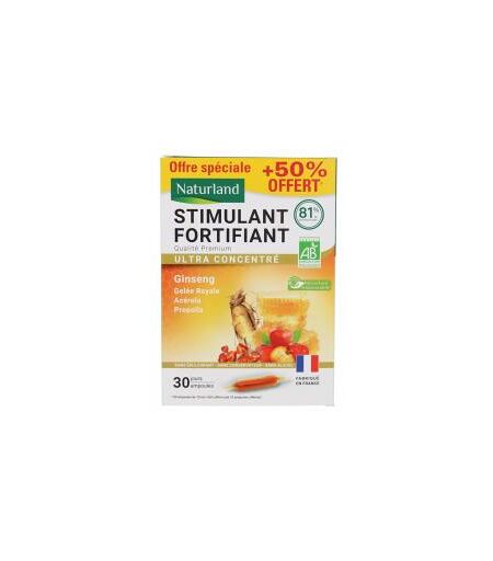 Naturland Stimulant Fortifiant Ultra Concentré Bio 20 Ampoules + 10 Ampoules Offertes - Boîte 20 + 10 ampoules de 10 ml