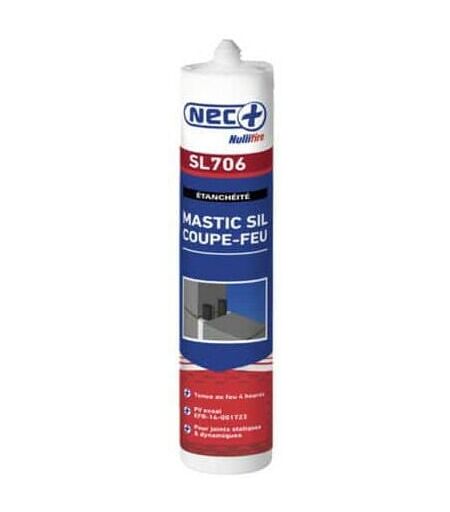 Présentation : Mastic coupe feu SL706 NEC+ noir 310ml est un mastic silicone neutre qui réticule avec l'humidité de l'air pour former rapidement un joint d'étanchéité souple et résistant. Il bénéficie des labels SNJF Façade et Vitrage ainsi que du rapport d'essai Efectis 4 heures N°EFR-14-001723 pour joints de dilatation. Le mastic SL706 s'utilise pour la réalisation de joints résistants au feu : en construction entre éléments béton, maçonnerie, béton cellulaire, en calfeutrement de vitrages résistants au feu, en étanchéité d'oculus dans la réalisation d'ouvrages résistants au feu, pénétration murale de tuyauteries, conduits d'air). SL706 s'utilise seul ou en association avec des fonds de joints spéciaux classés eux-mêmes ininflammables (NEC+ Nullifire bourrelet coupe feu Altofeu, laine de roche, joints en fibres minérales artificielles). Caractéristiques : Mastic coupe feu SL706 Coloris : noir Densité DIN 52 451 : 1,50 Formation de peau : environ 20 à 30 minutes Vitesse de ...