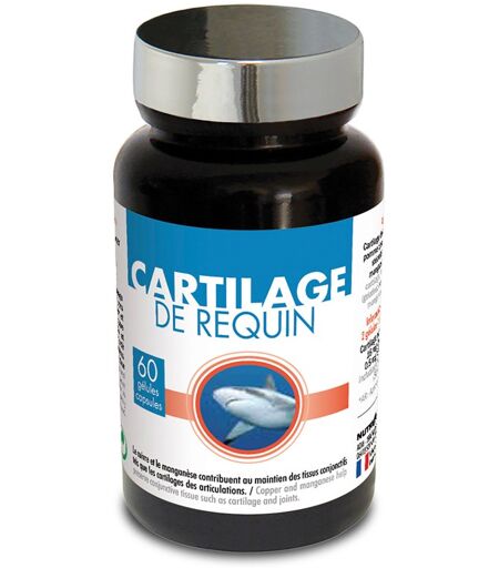 Le cartilage de requin est un véritable allié pour votre capital osseux ! En effet, celui-ci est très riche en nutriments, dont certaines substances qui contribuent à une bonne santé articulaire. Le cartilage de requin contient en particulier de la chondroïtine, un constituant essentiel du cartilage produit naturellement dans l'organisme. La chondroïtine joue un rôle dans la construction et le maintien du tissu cartilagineux, qui va lui-même contribuer à la souplesse des cartilages et à la solidité des articulations. Shoppingnature vous propose une formule unique : Chondroïtine, qui participe au maintien des tissus conjonctifs, cartilages et tendons ; Cuivre et Manganèse, des Oligo-éléments qui viennent renforcer les propriétés du cartilage de requin sur la santé articulaire. On trouve aujourd'hui sur le marché des compléments alimentaires de qualité diverses. Certains compléments alimentaires Cartilage de Requin manquent de transparence sur la provenance du produit. Soyez vigilant et exigez la meilleure qualité : pureté, concentration, normes… L'extrait de Cartilage de Requin est totalement assimilable par l'organisme. Il est issu d'une espèce commune : le siki dont la survie n'est pas menacée. Soulager ses articulations avec le cartilage de requin Avec l'âge, et notamment après 60 ans, il devient important d'entretenir sa santé articulaire. Faites une cure de Cartilage de requin pour le maintien de votre capital osseux et pour soulager les douleurs articulaires. Complément alimentaire à base de cartilage de requin et de minéraux. Conditionnement : Pilulier de 60 gélules végétales ...