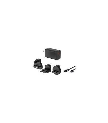 Alimentation secteur USB-C 65W Power Delivery avec Kit de prises internationales EU-UK-US-AU et port USB-A 30W - C?e USB-C (M) vers USB-C (M) 1.8m - Noir - Chargeur pour ordinateurs portables, tablettes et smartphones ...