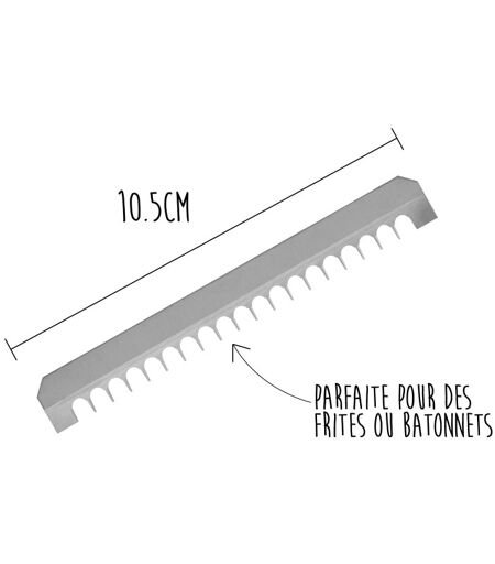 Lame de remplacement pour mandoline Benriner Acier inoxydable pour une parfaite tenue dans le temps Dents larges : pour réaliser des frites ou autres bâtonnets de légumes Tranchant redoutable pour des découpes nettes et rapides Lame plus longue que le couloir de coupe pour être fixée facilement Longueur de la lame : 10.5cm - Voir ci-dessous mandolines compatibles ...