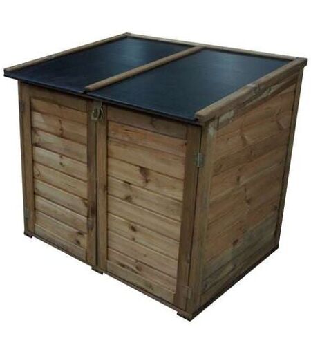 DESCRIPTION GÉNÉRALE Ce coffre de rangement Trocadéro est en pin traité autoclave d'une épaisseur de 12 mm, assurant robustesse et durabilité. Il dispose d'un toit en polypropylène étanche et résistant, offrant un esthétisme moderne. L'ouverture se fait par le devant grâce aux doubles portes, permettant de l'utiliser comme local technique de piscine ou pour le rangement d'équipements de jardin. Ce coffre multifonctions, étanche et sans entretien, est idéal pour le rangement extérieur. SPÉCIFICATIONS TECHNIQUES Dimensions ext. hors tout (L x P x H) : 105 x 86 x 97,7 cm Dimensions int. (L x P x H) : 99 x 78 x 76/90 cm Dimensions ext. au sol (L x P) : 105 x 78 cm Surface ext. hors tout : 0,90 m² Surface int. : 0,77 m² Surface ext. au sol : 0,81 m² Capacité : 600 L Poids : 40 kg Matière : Pin rouge du Nord Coloris : Marron (traitement autoclave) Temps de montage : 2 heures Inclus : plancher INSTALLATION Temps de montage : 2 heures. AUTRES INFORMATIONS Le traitement du bois par autoclave ...