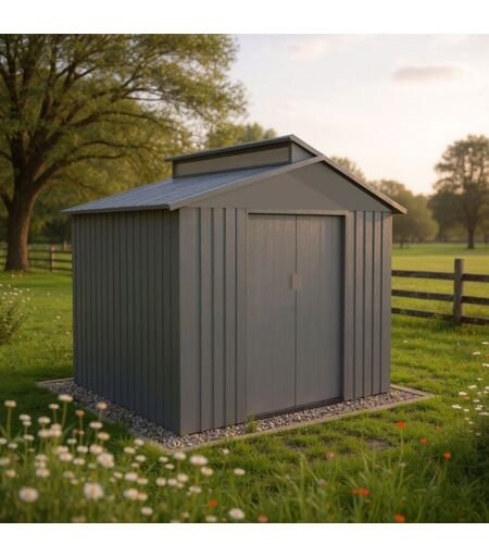 Description générale Cet abri de jardin en métal au design moderne et aspect bois vieilli est idéal pour stocker votre matériel de plein air, tels que tondeuses, vélos et outils de jardinage. Il est équipé de grilles d'aération pour maintenir vos affaires au sec toute l'année. Robuste et esthétique, cet abri ne nécessite aucun entretien. Spécifications techniques Dimensions extérieures (L x P x H) : 282 x 193 x 222 cm Dimensions intérieures (L x P x H) : 267 x 181 x 222 cm Dimensions au sol (L x P) : 275 x 189 cm Dimensions de la porte (L x H) : 117 x 162 cm Surface totale : 5,44 m² Poids : 72 kg Structure : acier zingué à chaud et galvanisé Coloris : gris / bois vieilli (7036) Hauteur des parois : 160 cm Épaisseur du métal : 3 mm Puit de lumière : polycarbonate (L x H : 178,2 x 13,8 cm, épaisseur : 1,8 mm) Toit : panneaux en acier galvanisé à chaud pré-peints Compatibilité et accessoires Inclus : deux portes coulissantes avec poignée 2 grilles d'aération arrière Kit d'ancrage ...