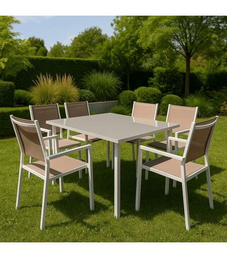 Profitez de repas de famille ou entre amis avec cette table de la gamme PRIMAVERA. Votre jardin ou de votre terrasse n'auront plus la même allure. La gamme PRIMAVERA propose aussi les chaises assorties à cette table Dimensions de la table (L x P x H) : 150 x 90 x 75,5 cm Armature en acier et cataphorèse Peinture Epoxy Plateau en verre trempé Épaisseur : 8 mm Traitement anti‐corrosion et anti-UV Coloris : structure : gris clair / Plateau : taupe Poids : 39 kg Dimensions de la table (L x P) : 150 x 90 cm Poids : 40 kg ...