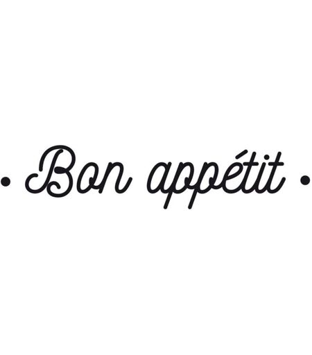 Autocollant Mural bon appétit A coller sur une surface PARFAITEMENT lisse, lessivée et séchée. Non adapté aux papiers peints, surfaces rugueuses et peinture texturées même légèrement. Dimensions de la planche : 70 x 20 cm Dimensions du sticker mis en place : Hauteur 15 cm - Largeur 63 cm ...